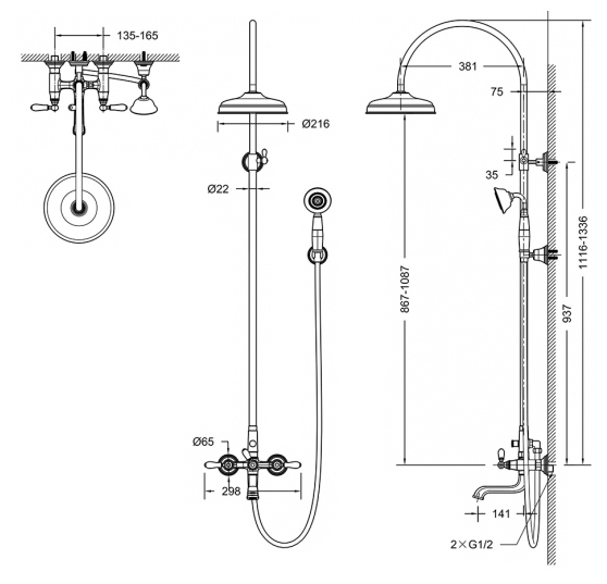 С регулировкой по высоте, Со смесителем, С изливом, Без термостата |