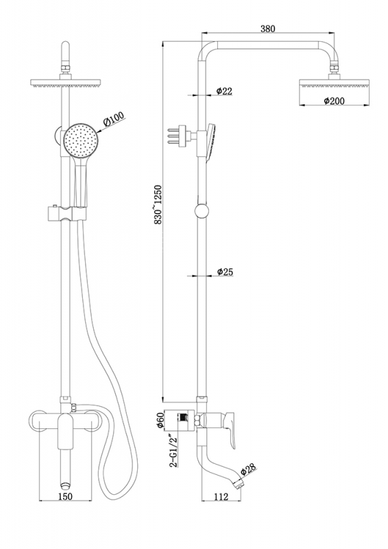 Диаметр верхнего душа: 200 мм.
