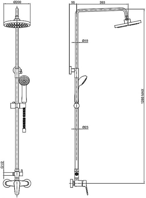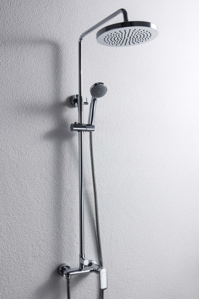 Душевая система Bravat Opal R F9125183CP-A2-RUS со смесителем для душа. Верхний душ круглой формы. Картридж: Kerox. Шланг 1,5 м. PVC. Верхний душ: 20 см ABS-пластик. Ручной душ: 1 режим. Штанга: латунь, диаметр 22 мм.