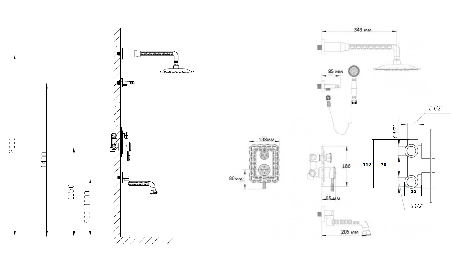- Стандарт подводки: G1/2.