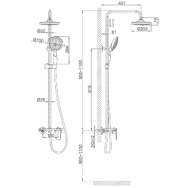 - Длина душевого шланга: 1500 мм