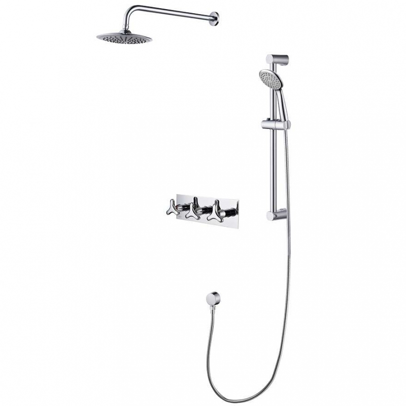 Душевая система D&K Goethe Hessen DA1385641. Превосходный дизайн изделия дополнит большинство ванных комнат в современном стиле. Изготовлена из высококачественной латуни с покрытием цвета хром, которое со временем не теряет цвет, устойчиво к царапинам и отлично защищает от коррозии.Характеристики:
