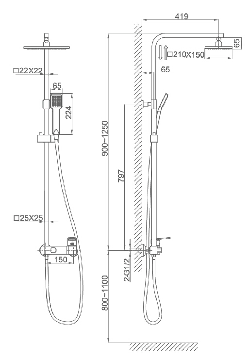 Душевая система D&K Speyer Rhein DA1313701A04 с однорычажным смесителем без излива, ручным душем с держателем на штанге и тропическим верхним душем.