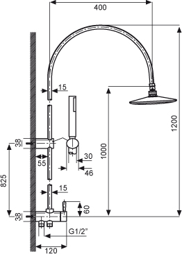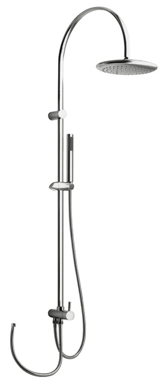 Душевая система Emmevi c02611. Овальная душевая стойка с дивертером. Цвет хром. Подключение воды из настенного смесителя. В комплект входят: головка для верхнего душа, гибкий шланг двойного плетения 1500 мм, ручной душ, подвижный держатель для ручного душа.