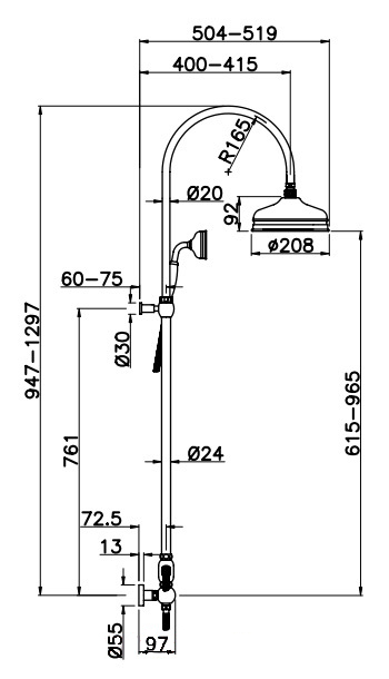 Душевая система Gattoni Programma Docce 4290 с верхним душем (Antikalk-System), под смеситель для ванны/душа (низ), цвет: хром.