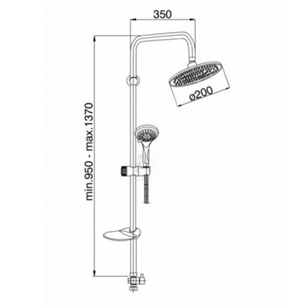 - Душевая штанга высотой 137 см с регулируемым держателем для лейки.
