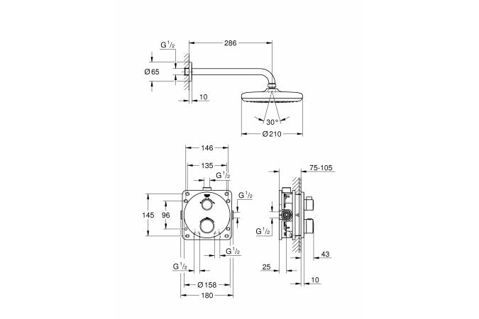 Душевая система Grohe Grohtherm 34726000 со встраиваемым термостатом.