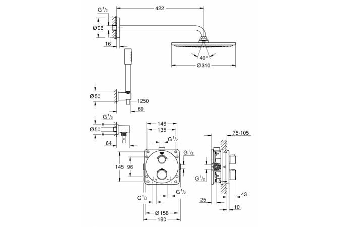 Душевая система Grohe Grohtherm 34731000 со встраиваемым термостатом.