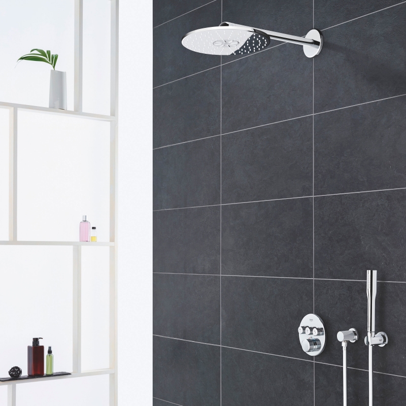 Душевая система Grohe Rainshower SmartActive 34705000 со встраиваемым термостатическим смесителем.