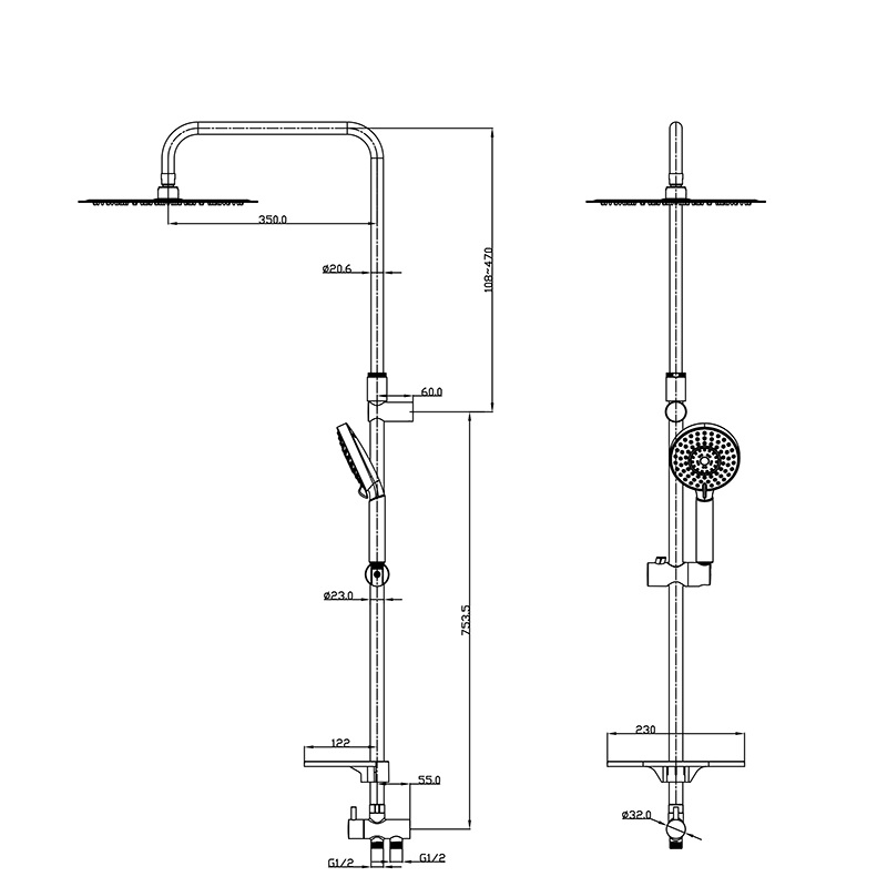 Телескопическая стойка: регулировка высоты: 86-123 см.