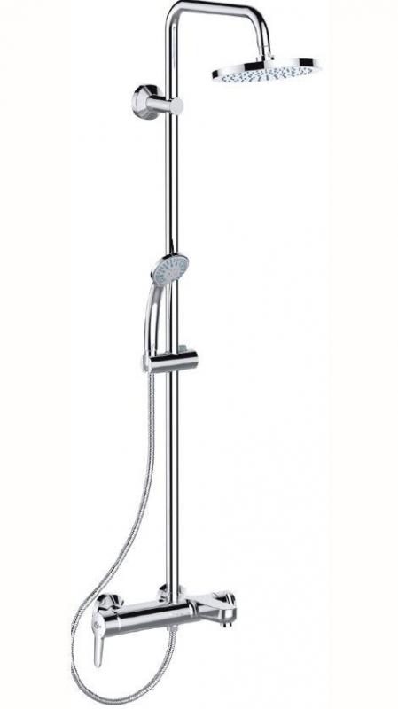 Душевая система Ideal Standard Ideal Rain Eco B1377AA с однорычажным смесителем, изливом, с верхним душем, ручным душем. Встроенный 3-функциональный керамический переключатель направления потока воды, душевая лейка 80 мм (B9401AA) 3-функциональная, пластиковый верхний душ - 200 мм, шаровое соединение. Каскадный аэратор, кнопочная регулировка высот держателя лейки.