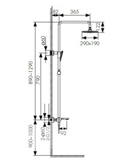 - Душевая штанга из высокачественной латуни. Регулируется по высоте от 89 до 129 см.