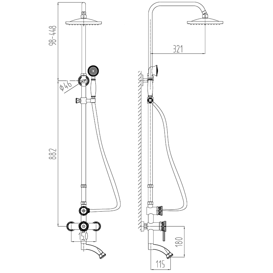 Душевая система Milacio Villena MC.103.SL - идеально подходит для ванной комнаты, выполненной в ретро стиле.
