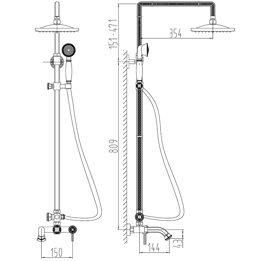 Душевая система Milacio Vitoria MC.101.SL - идеально подходит для ванной комнаты, выполненной в ретро стиле.