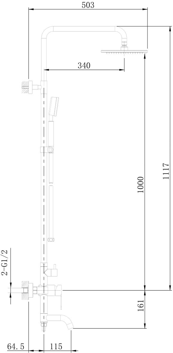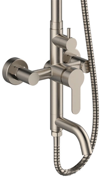 В комплекте поставки: душевая штанга, смеситель, верхний душ, ручная лейка, душевой шланг.