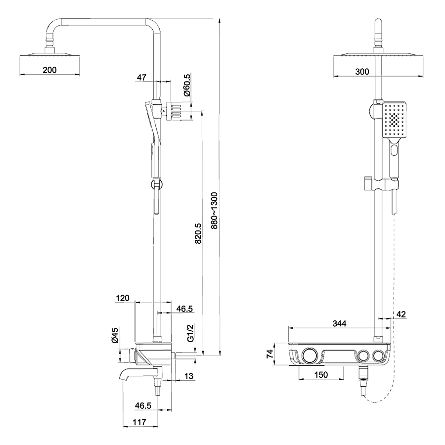 Со смесителем, С регулировкой по высоте, С изливом, С термостатом |