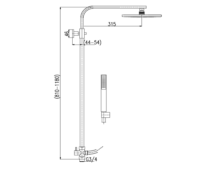 Душевая штанга MD0554 с керамическим переключателем для настенных смесителей с металлическим шлангом в современном стиле. Цвет оформления хром.