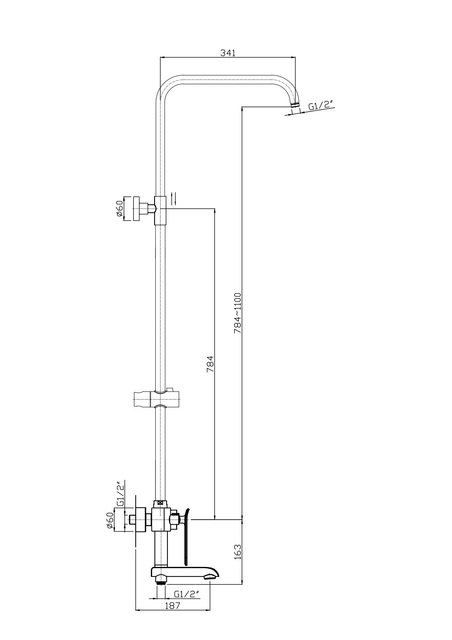 ST4235-20 - Тропическая, душевая система со смесителем для ванны с поворотным изливом, хром