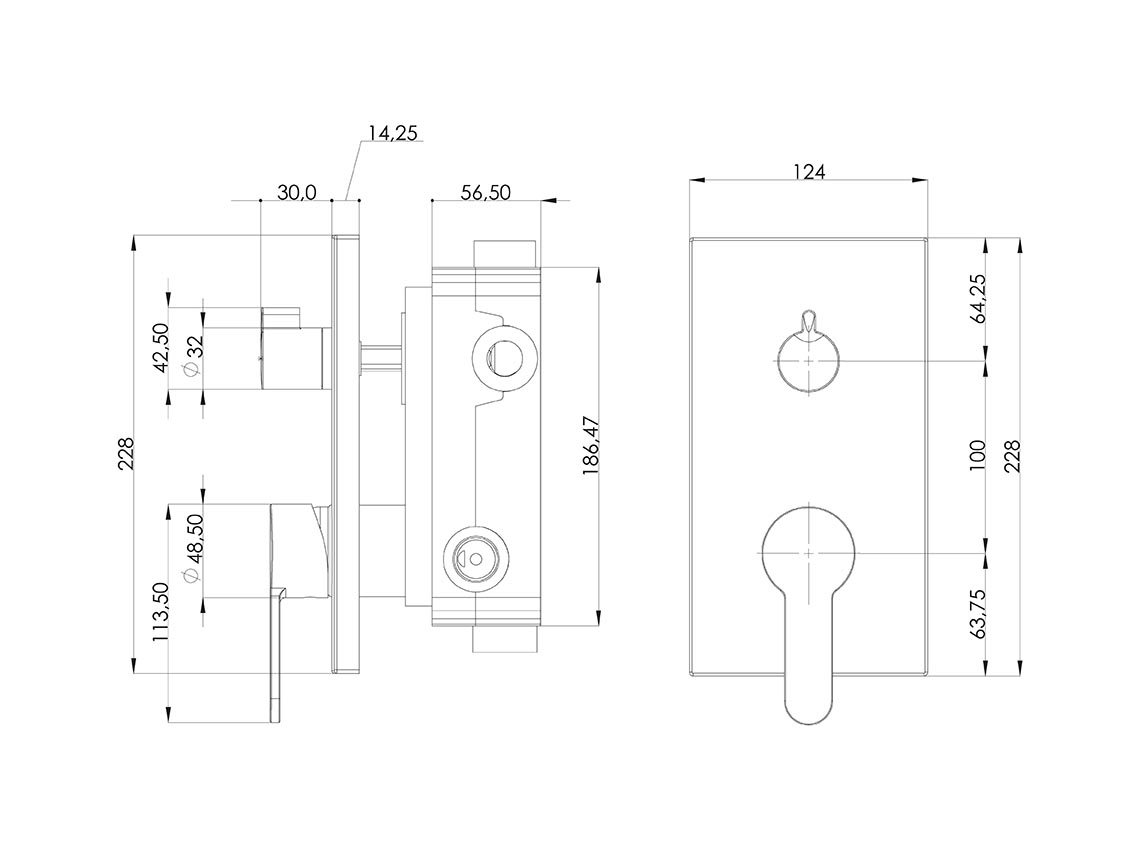 - Верхний душ прямоугольной формы размером 36 х 22 см. Режим струи: Тропический дождь.