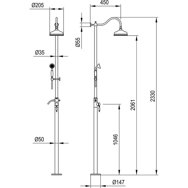 - Круглый верхний душ диаметром 20,5 см.