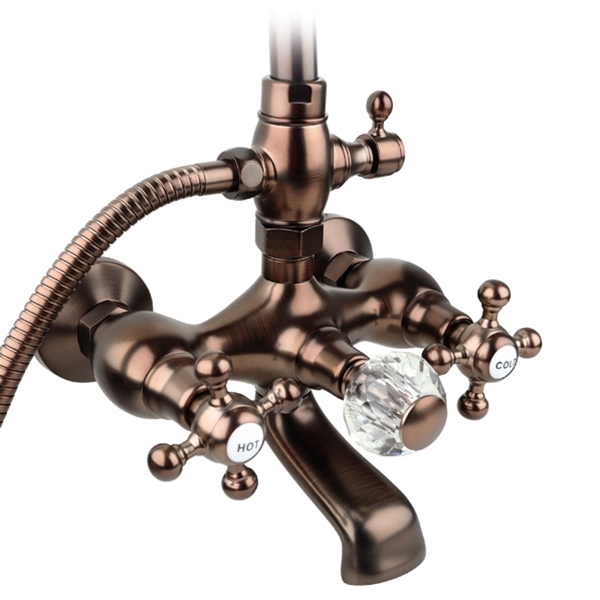 Душевая система Timo Timo Nelson SX-90 orb с двумя рукоятками, со смесителем, верхним душем и лейкой. Решение для ванной в стиле ретро. Хорошо будет смотреться и в интерьере в классической стилистике.