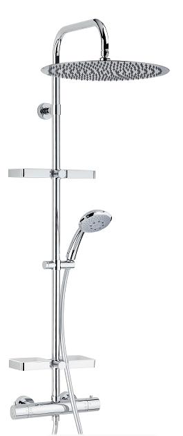 Душевая стойка Valentin Opium Dome 669800 000 00. Цвет хром. В комплекте поставки: эксклюзивный экстра плоский верхний душ D 400 мм , ручной душ, гибкий силиконовый шланг 1,75 м, душевая штанга из нержавеющей стали, термостатический смеситель NF. Регулировка по высоте. Блокируемая температура +38С.