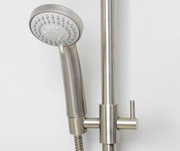 В комплекте поставки: душевая стойка, верхний душ, ручной душ, держатель для лейки, монтажный набор.