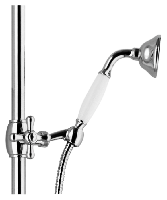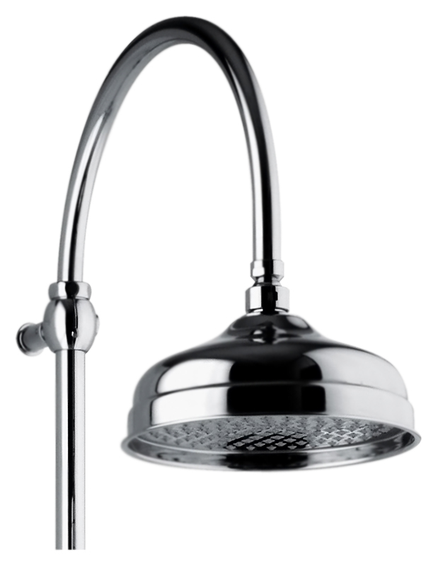 Душевая система Webert Dorian DO721208015 с круглым верхним душем, с двухвентильным смесителем с изливом, с ручками стилизованными под керамику.