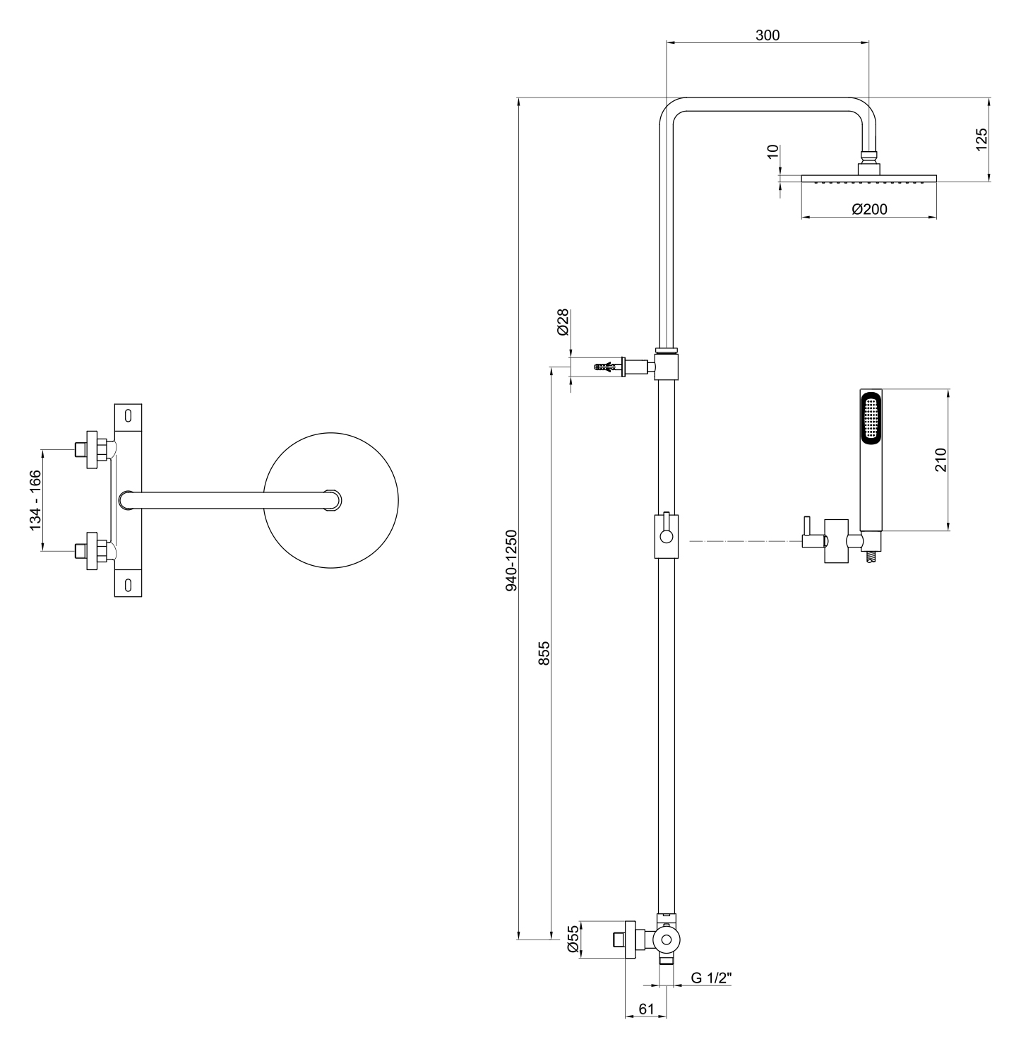 Душевая система Webert Elio EL980507015PVC с круглым верхним душем из PVC, с термостатическим смесителем.