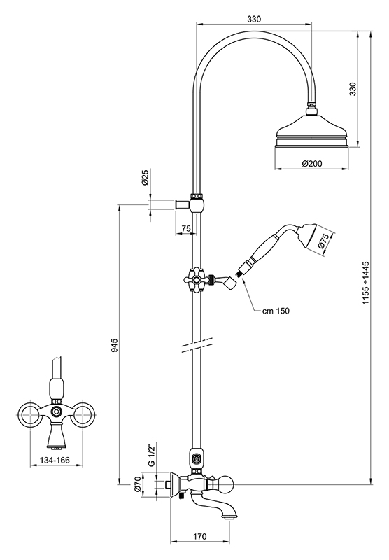 Душевая система Webert Karenina KA721208015 с круглым верхним душем, с двухвентильным смесителем с изливом.