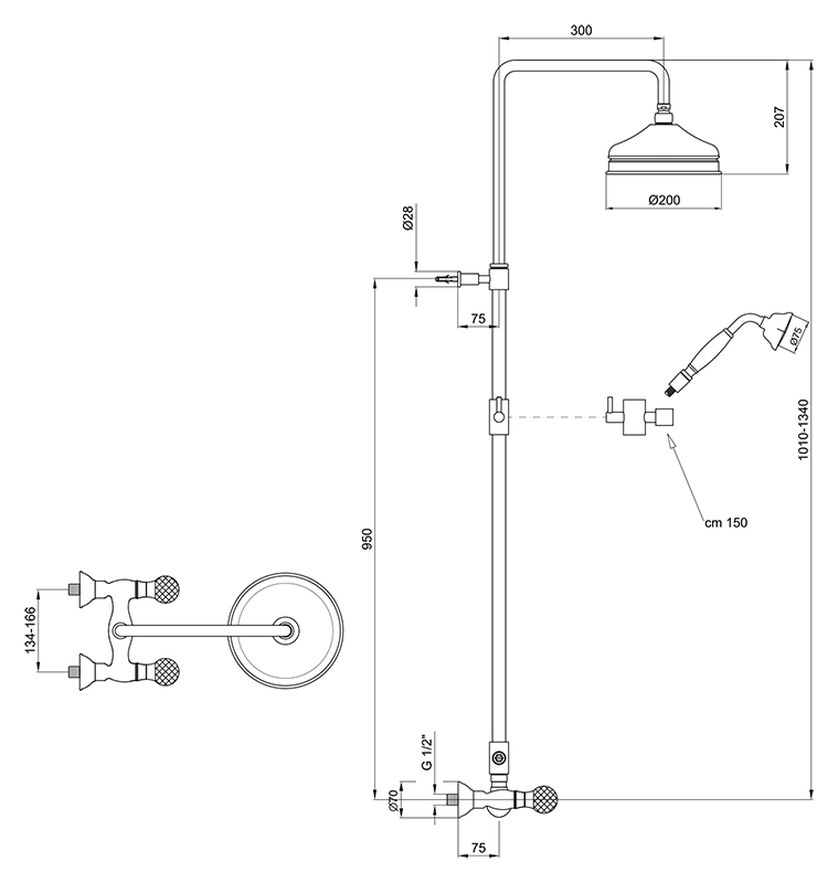 Душевая система Webert Karenina KA760405015 с круглым верхним душем, с двухвентильным смесителем.