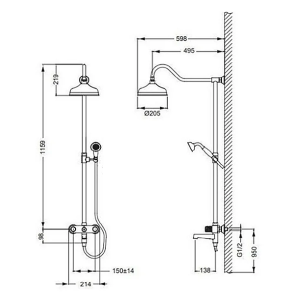 В комплекте поставки:штанга, смеситель, верхний душ, ручной душ, держатель для лейки, монтажный набор.