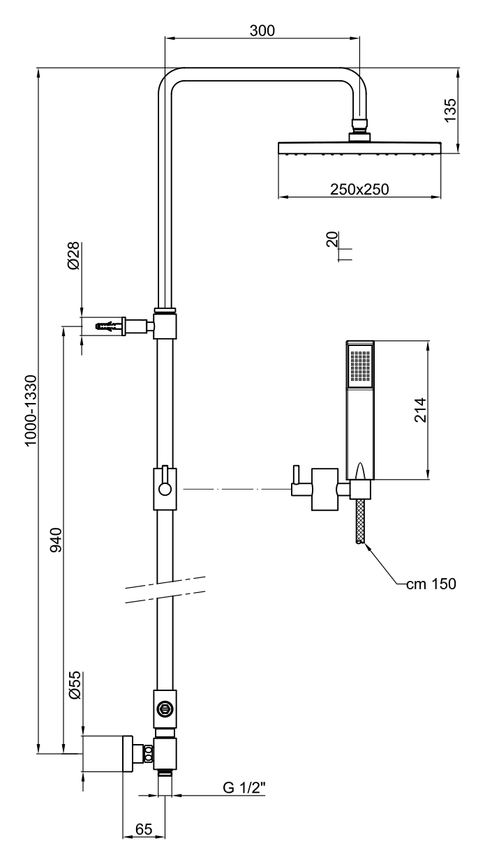 Регулируемая по высоте телескопическая штанга: 100-133 см.