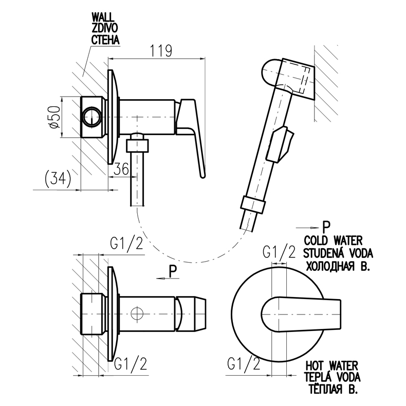 Гигиенический душ Rav Slezak Colorado CO147/1 со встраиваемым, однорычажным смесителем, изготовленным из высококачественной латуни, которая исключает какую-либо коррозию. Смеситель с металлической рукояткой, с качественным керамическим картриджем 35 мм Kerox, производство Венгрия, гарантирует долговечность и мягкий поток воды. Металлическая душевая лейка с нажимной кнопкой. Металлический душевой шланг длиной 1000 мм. В комплекте: внешняя и внутренняя части смесителя, душевая лейка, настенный держатель для лейки, шланг и комплект крепления.