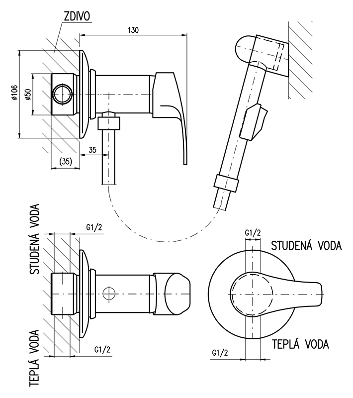 Встраиваемый смеситель для гигиенического душа Rav Slezak Kongo K047/1 однорычажный, с гигиеническим душем, изготовлен из высококачественной латуни, которая исключает какую-либо коррозию. Металлическая рукоятка. Качественный керамический картридж 40 мм Kerox, производство Венгрия, гарантирует долговечность и мягкий поток воды. Металлическая душевая лейка с нажимной кнопкой. Металлический душевой шланг 1000 мм. В комплекте: внешняя и внутренняя части смесителя, душевая лейка, настенный держатель для лейки, шланг и комплект крепления.