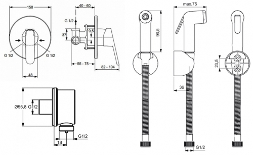 Гигиенический душ со смесителем Ideal Standard Ceraplan B0040AA однорычажный. В комплект поставки входят смеситель для душа Ideal Standard Ceraplan A5960AA со скрытой частью, гигиенический душ Ideal Standard B0595AA со шлангом и держателем, а также шланговое подсоединение Ideal Standard B9448AA. Цвет изделий комплекта хром.