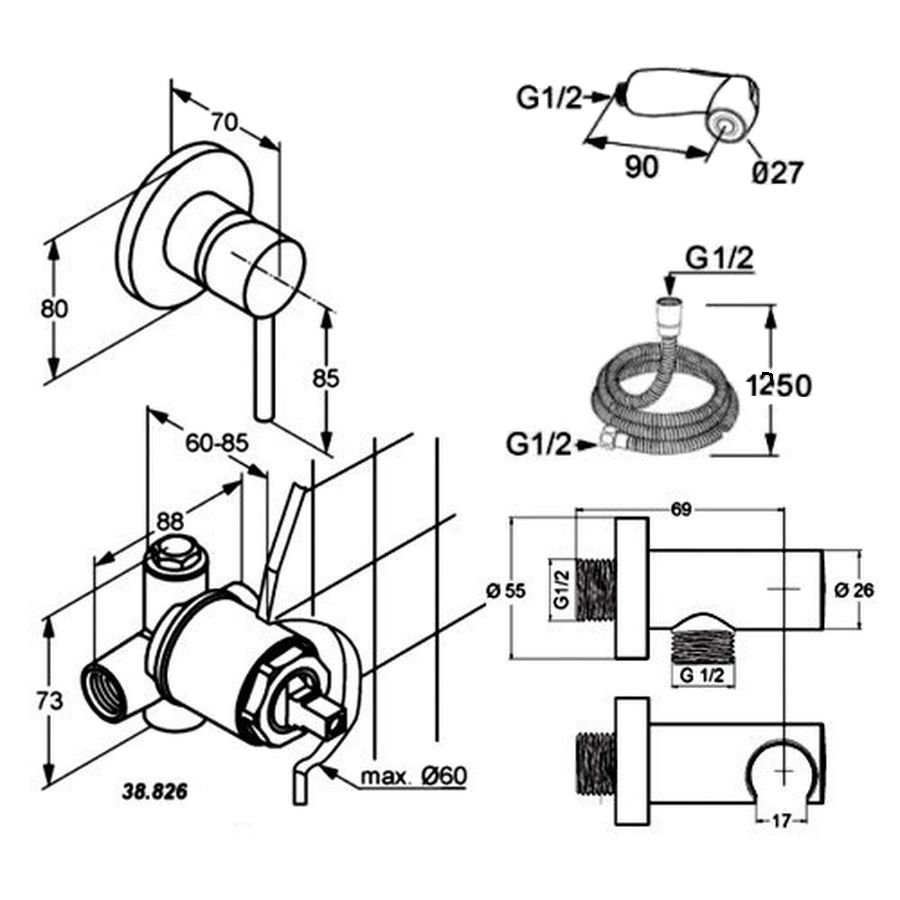 - Высота лейки гигиенического душа: 9 см.