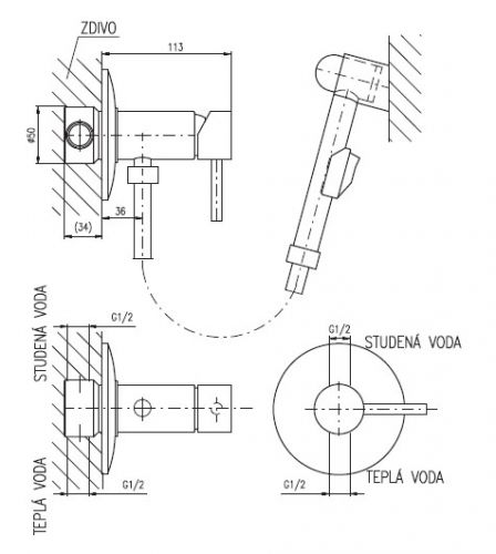 Гигиенический душ Rav Slezak Seina SE947 со смесителем. Монтаж в стену.