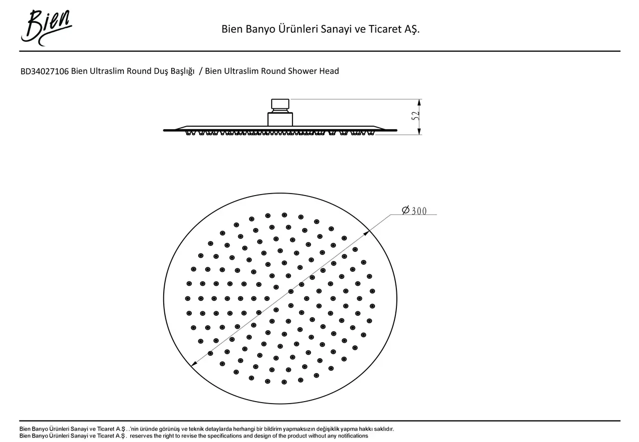 Тонкий верхний душ Bien BD34027106 круглой формы. Современный дизайн изделия дополнит ванные комнаты в различных стилях.