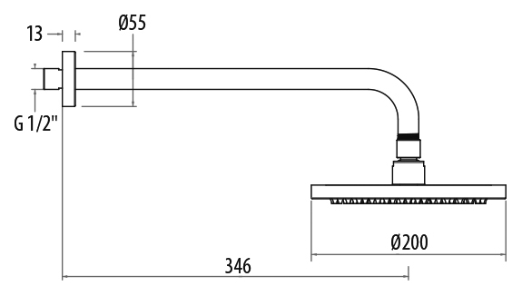 Круглый верхний душ Gattoni Programma Docce 1090/PD с системой против известковых отложений, с настенным кронштейном длиной 346 мм.