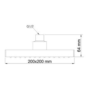 - Насадка для верхнего душа размером 20 х 20 см выполнена из ABS-пластика со 144 форсунками с системой защиты от известковых отложений.