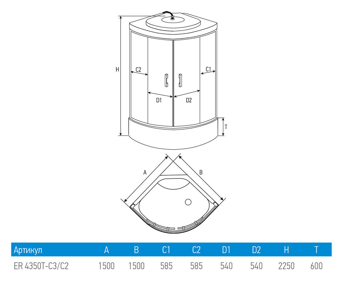 Душевой бокс Erlit Comfort ER4350T-C2 150x150 см с гидромассажем.