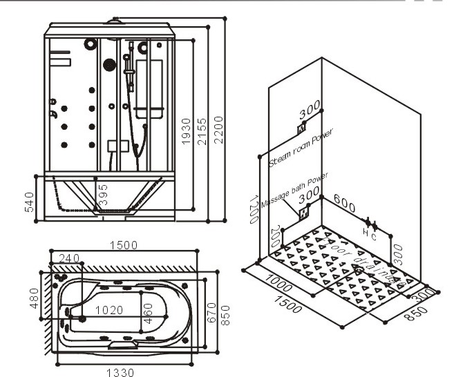 Душевой бокс SSWW WU103A L 150x85 см с гидромассажем.