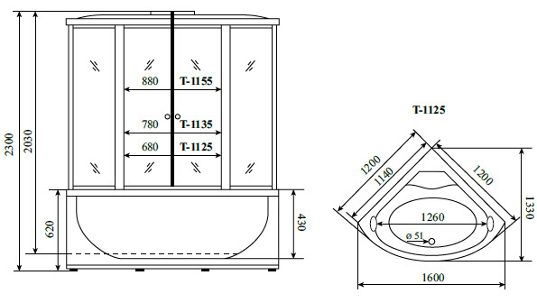 - Материал поддона: акрил.