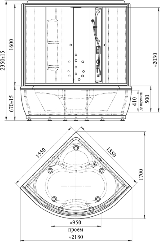 - Стандартный гидромассаж с контроллером (4 форсунки по периметру, 10 форсунок спинного массажа (5+5)).