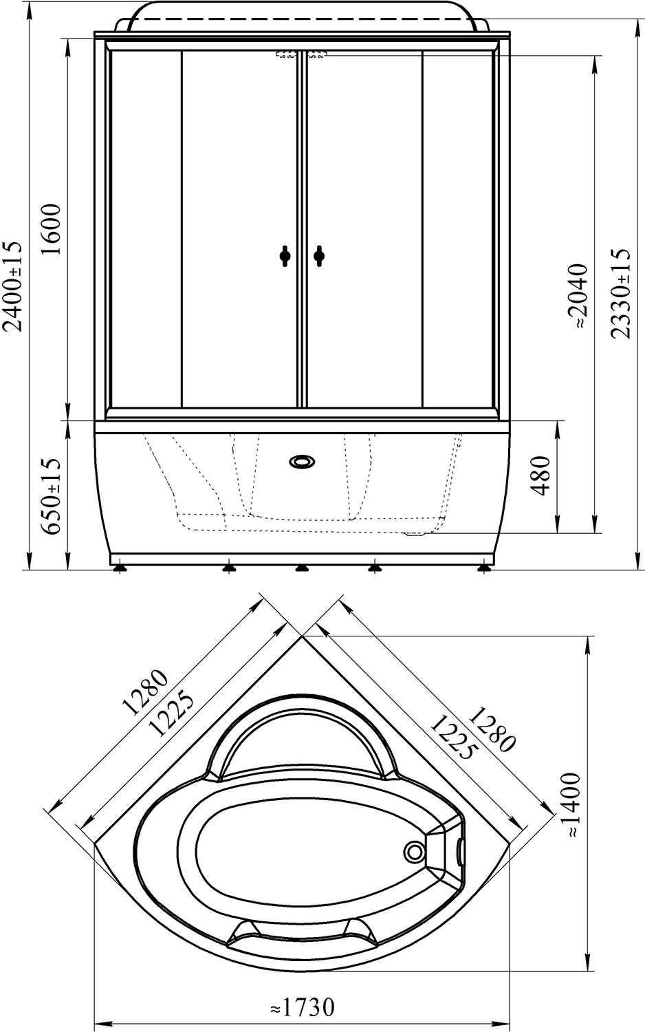 - Глубина поддона: 48 см.