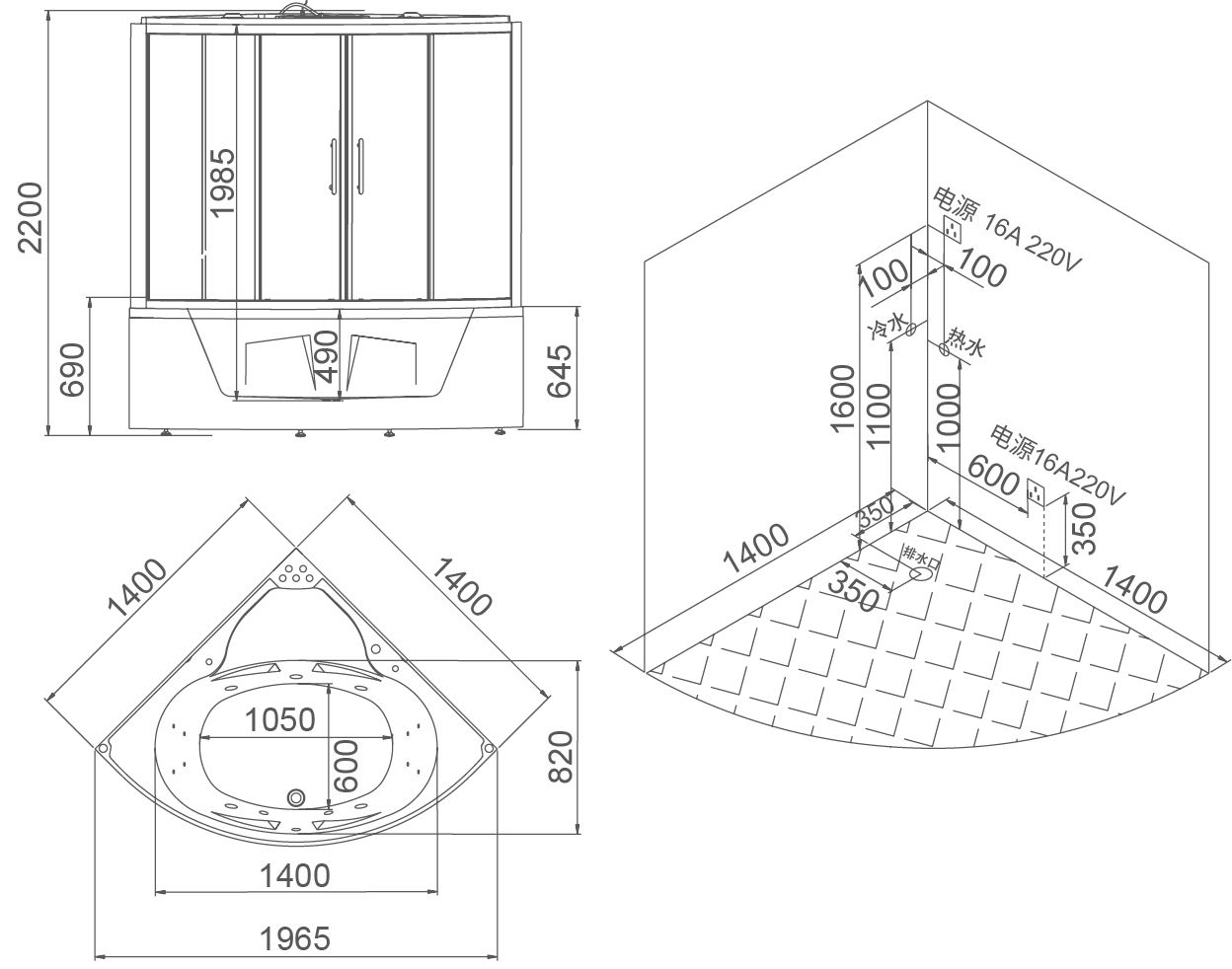 - Габариты (ДхШхВ): 140х140х220 см,
