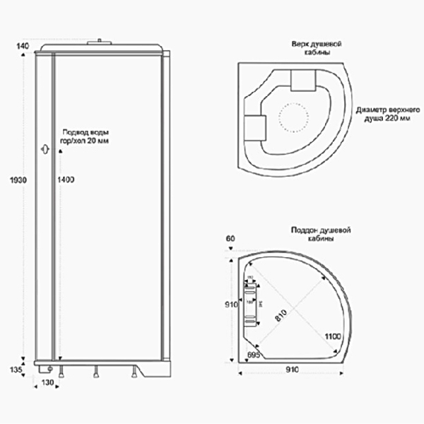С подсветкой, ручной душ, верхний душ, радио |