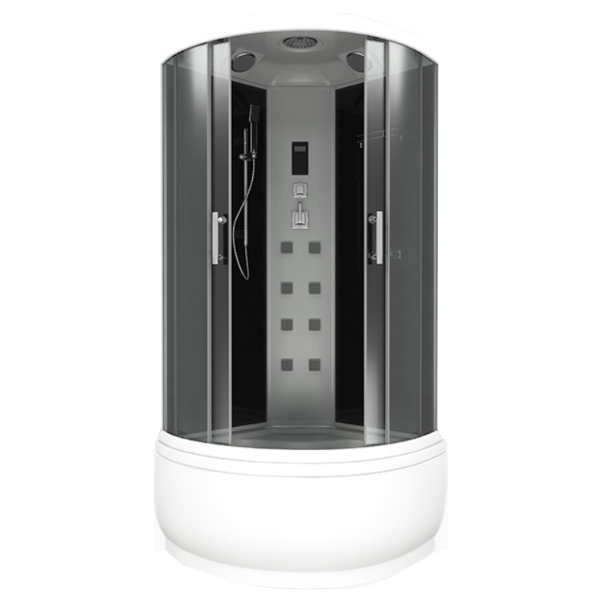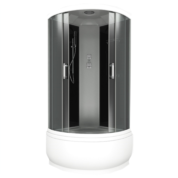 Душевая кабина Bas Арона 100х100 Eco. Душевой поддон на каркасе, акриловая крыша, профиль матовый хром, передние и задние стенки - безопасное закаленное стекло Графит. Цвет Черный.Технические характеристики: