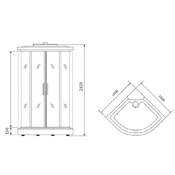 - Акриловый поддон на металлическом оцинкованном каркасе, выдерживающий вес до 150 кг.